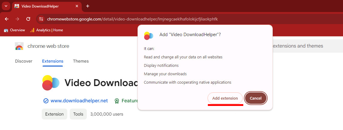 Download Video DownloadHelper for chrome