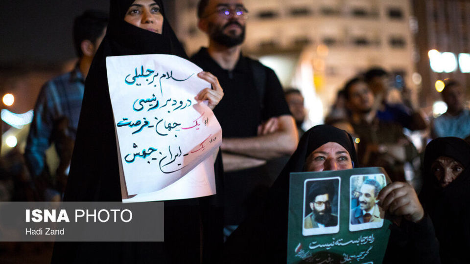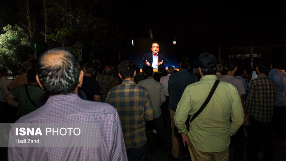 مسعود پزشکیان و سعید جلیلی، دو نامزد راه یافته به دور دوم چهاردهمین دوره انتخابات ریاست جمهوری، شامگاه دوشنبه ۱۱ تیر در ساختمان شیشهای صدا و سیما درباره دو موضوع سیاسی و فرهنگی با یکدیگر مناظره کردند. برخی از مردم پایتخت با حضور در پارک دانشجو به تماشای این مناظره پرداختند.