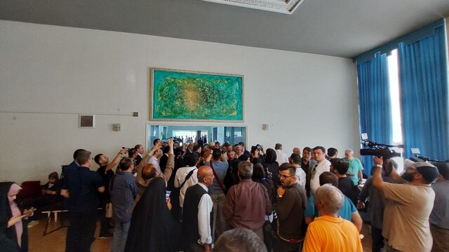 - ساعت ۱۱:۳۰: به روایت دوربینهای حاضر، ازدحام قابل توجهی از اصحاب فرهنگ، هنر و رسانه در تالار وحدت شکل گرفته است. همچنین خبرنگاران، عکاسان و تصویربرداران زیادی در این مکان حاضرند تا حضور هنرمندان را به ثبت برسانند.