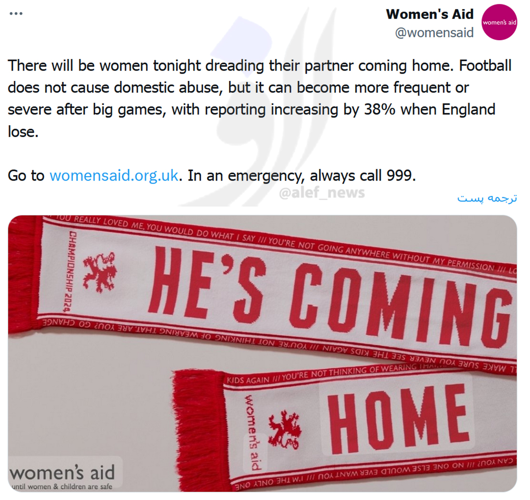 4030425029به گزارش فارس، یک گروه انگلیسی میگوید در زمانهایی که تیم فوتبال انگلیس میبازد خشونت علیه زنان ۳۸ درصد بیشتر میشود. بدتر اینکه اگر انگلیسیها بازی را ببرند، بازهم خشونت خانگی ۲۸ درصد بیشتر از قبل میشود!