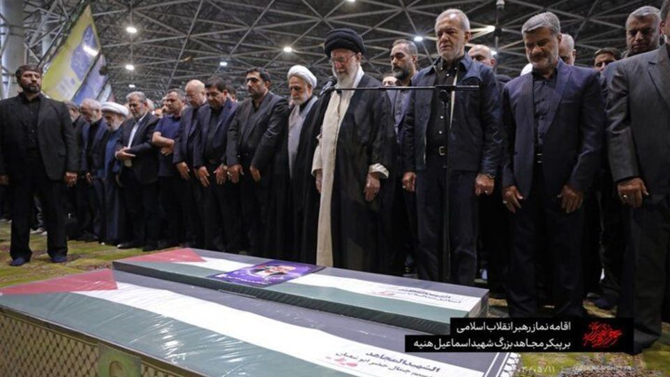 رهبر معظم انقلاب در حین خواندن نماز بر پیکر شهید اسماعیل هنیه فراز «اللّهمّ انّا لا نعلم منهم الاّ خیرا» به معنای «خدایا! ما جز خیر و خوبی از او ندیدهایم» را خواندند.