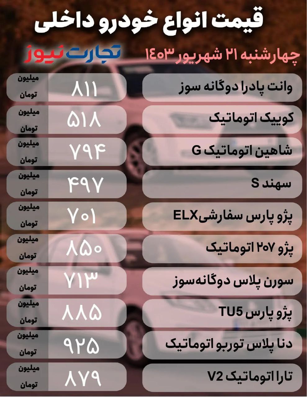 جدیدترین قیمت خودرو های داخلی و خارجی