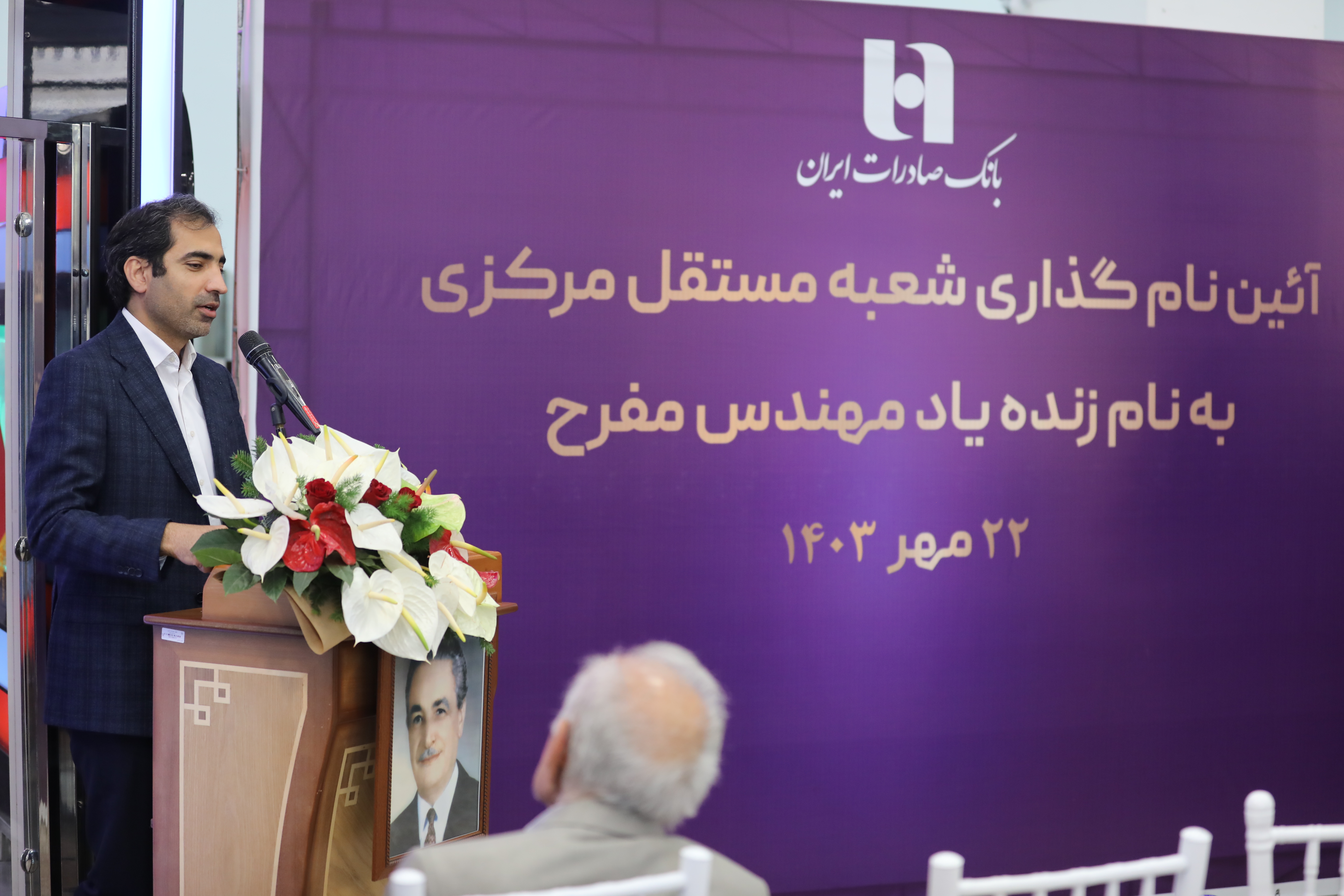 به گزارش روابطعمومی بانک صادرات ایران، همزمان با 22 مهرماه، سالروز وفات بنیانگذار این بانک، شعبه مستقل مرکزی کد 3046 بانک صادرات ایران طی مراسمی با حضور مدیران ارشد بانک، بازنشستگان، برخی مشتریان و کارکنان بانک به نام مهندس محمدعلی مفرح نامگذاری شد.
