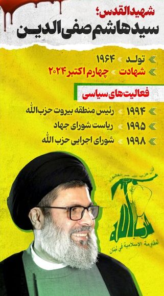 4030803014حزبالله در بیانیهای از شهادت سید هاشم صفیالدین رئیسشورای اجرایی این جنبش در حمله تروریستی رژیم صهیونیستی به ضاحیه بیروت خبر داد. سید هاشم صفیالدین رئیس شورای اجرایی حزبالله لبنان بود. از او بهعنوان نفر دوم حزبالله و جانشین شهید سید حسن نصرالله یاد میشد.