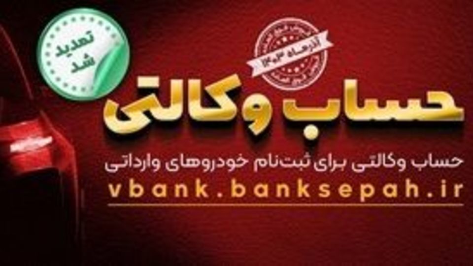 بهگزارش پایگاه اطلاعرسانی بانک سپه، در راستای اجرای اطلاعیه سازمان توسعه تجارت ایران مبنی بر طرح عرضه خودروهای وارداتی مشتریان گرانقدر بانک سپه میتوانند همانند دورههای قبل برای وکالتی نمودن حسابهای خود به صورت غیر حضوری صرفاً از طریق لینک Vbank.banksepah.ir تا تاریخ دو شنبه ۱۹ آذر ماه سال جاری نسبت به وکالتی نمودن حساب به نام خودروهای وارداتی با مبلغ مسدودی 5 میلیارد ریال و قبول شرایط و ضوابط خرید خودرو اقدام کنند.