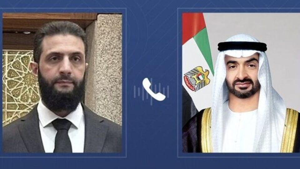 به گزارش ایسنا، «احمد الشرع» سرکرده تحریرالشام و رئیس دولت موقت سوریه ملقب به «ابومحمد الجولانی» با محمد بن زاید آل نهیان، رئیس امارات متحده عربی تماس تلفنی برقرار کرد و دو طرف طی این گفتوگوی تلفنی درخصوص راههای تقویت روابط دوجانبه بین سوریه و امارات در راستای ارتقای منافع مشترک میان این دو کشور به بحث و تبادلنظر پرداختند.