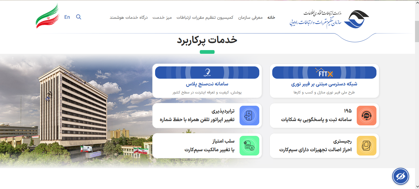 آدرس سایت سازمان تنظیم مقررات و ارتباطات رادیویی www.cra.ir است.