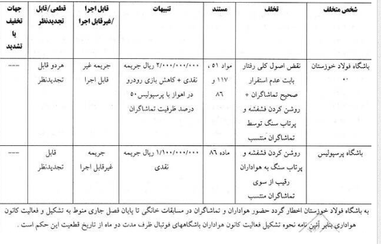اعلام رای تخلفات دیدار فولاد و پرسپولیس ۲۳ بهمن ۱۴۰۳، ۱۰:۱۵ 4031123028 رای تخلفات دیدار فولاد خوزستان و پرسپولیس از سوی کمیته انضباطی اعلام شد. به گزارش مشرق، رای تخلفات دیدار فولاد خوزستان و پرسپولیس از سوی کمیته انضباطی به شرح زیر اعلام شد: