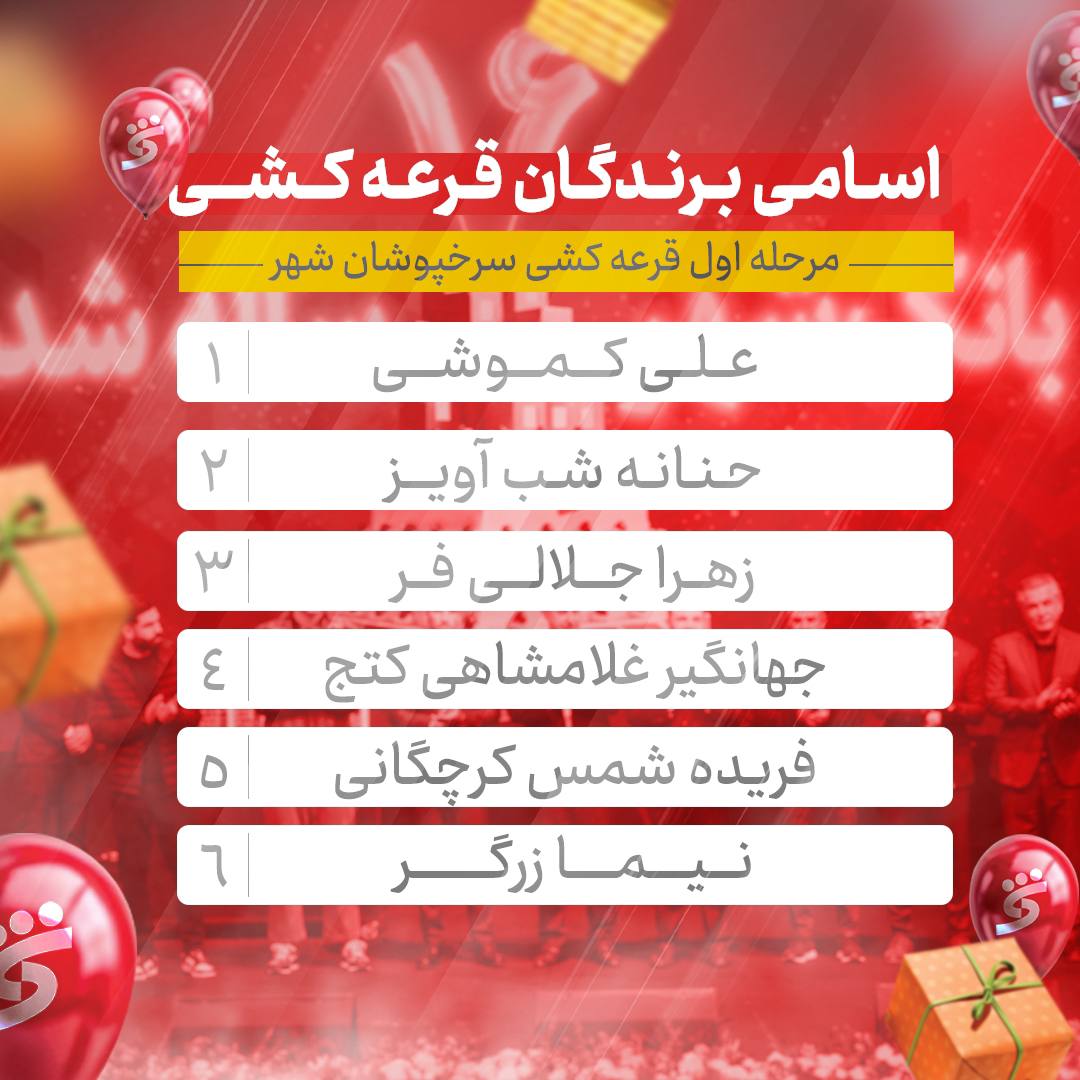 اسامی برندگان مرحله اول قرعه کشی جشنواره «سرخپوشان شهر» بانک شهر بدین شرح است