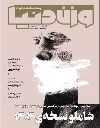 شماره ۳۵ «وزندنیا»، در ۲۰۰ صفحه و با قیمت ۳۰۰ هزار تومان از امروز در کتابفروشیها و کیوسکهای مطبوعاتی معتبر در دسترس مخاطبان شعر است. این مجله زیر نظر شورای سردبیری شامل پوریا سوری، صابر محمدی و میترا فردوسی منتشر میشود.