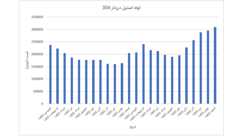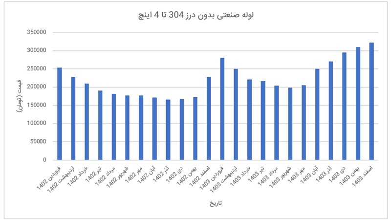 - بازگشت قیمت: در اسفند ۱۴۰۳، قیمت لوله بدون درز استیل 304 به ۳۲۱,۸۰۰ تومان رسید که متاثر از قیمت جهانی نیکل و رشد تقاضای صنایع در ایران بود.