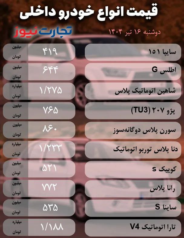 4040416018اطلس G با افزایش قیمت ۲ میلیون تومانی در شاخص ۶۴۴ میلیون تومان ایستاد. رسپکت ۲ کاهش ۷ میلیون تومانی را در بازار آزاد ثبت کرد و با ارزش یک میلیارد و ۶۴۰ میلیون تومان در پلتفرمهای فروش خودرو آگهی شد.