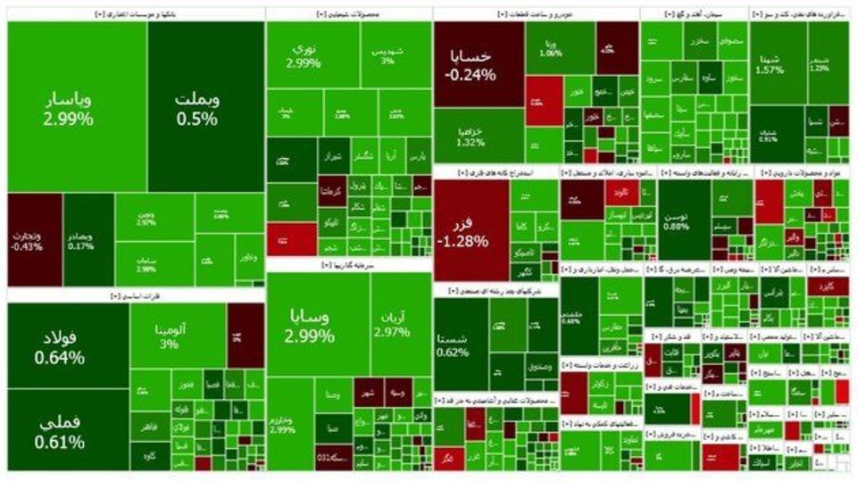 فارس، فملی و پارسیان بیشترین تاثیر مثبت را بر شاخص بورس داشتند. از نمادهای پرتراکنش نیز میتوان به خساپا، وبملت و وتجارت اشاره کرد.