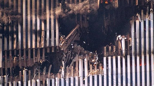 آخرین عکس اِدنا سینترون، که رو لبهی یکی از برجهای مرکز تجارت جهانی وایستاده، درست قبل از اینکه برجها فرو بریزن.