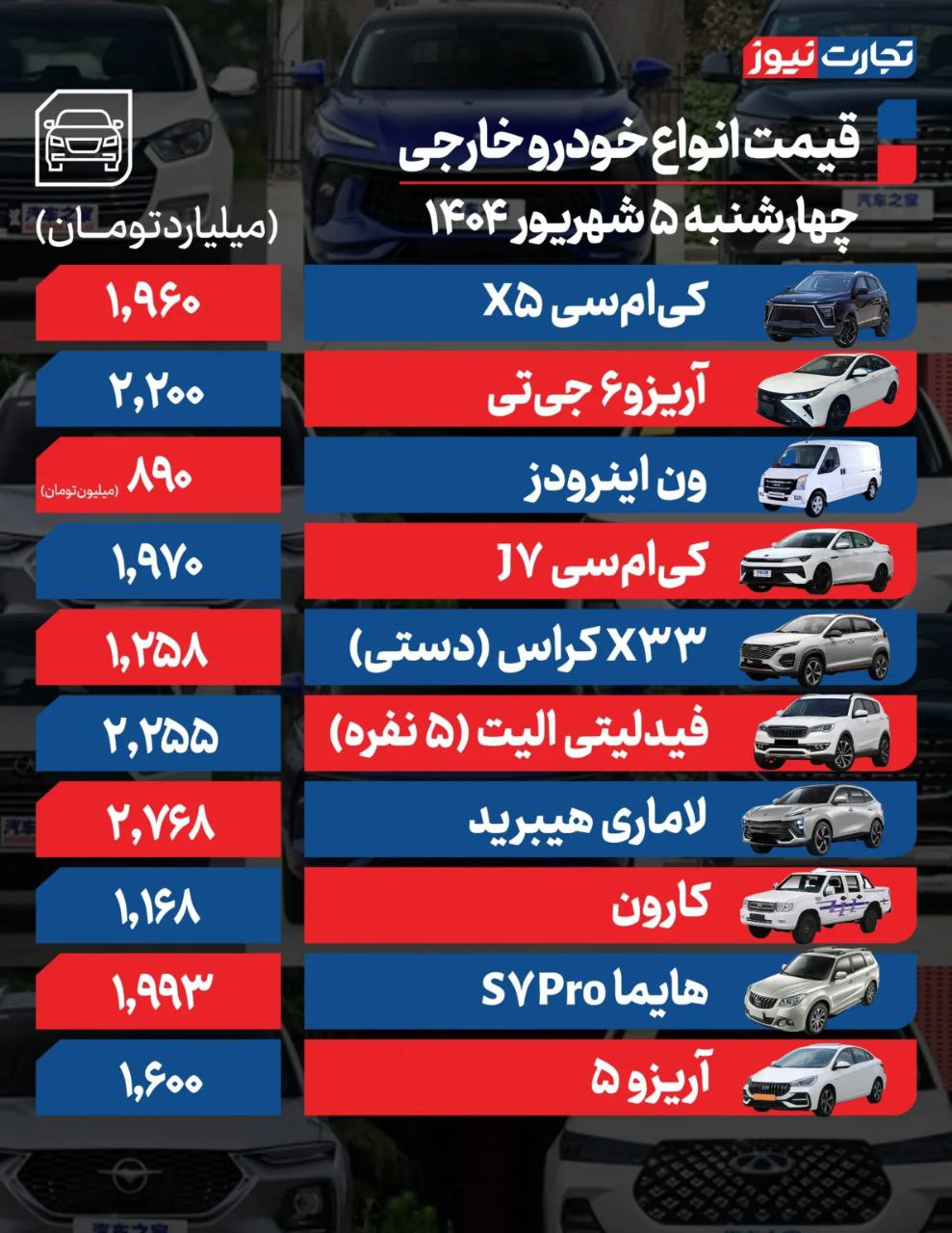 4040605015 ۲ نظر، ۰ در صف انتشار و ۰ تکراری یا غیرقابل انتشارمیان محصولات داخلی، محصولات ایران خودرو، نوسانات قیمتی بیشتری را تجربه کردند. تارا اتوماتیک V۴ در روز جاری ۲۰ میلیون تومان گران شد و روی شاخص یک میلیارد و ۱۸۰ میلیون تومان ایستاد. سیگنال گرانی خودروهای مونتاژی، بیشترین تاثیر را بر قیمت محصولات مدیران خودرو گذاشت. بر این اساس، X۳۳ کراس (دستی) و آریزو ۶ جیتی، بیشترین نوسانات قیمتی را تجربه کردند.| تجارتنیوز