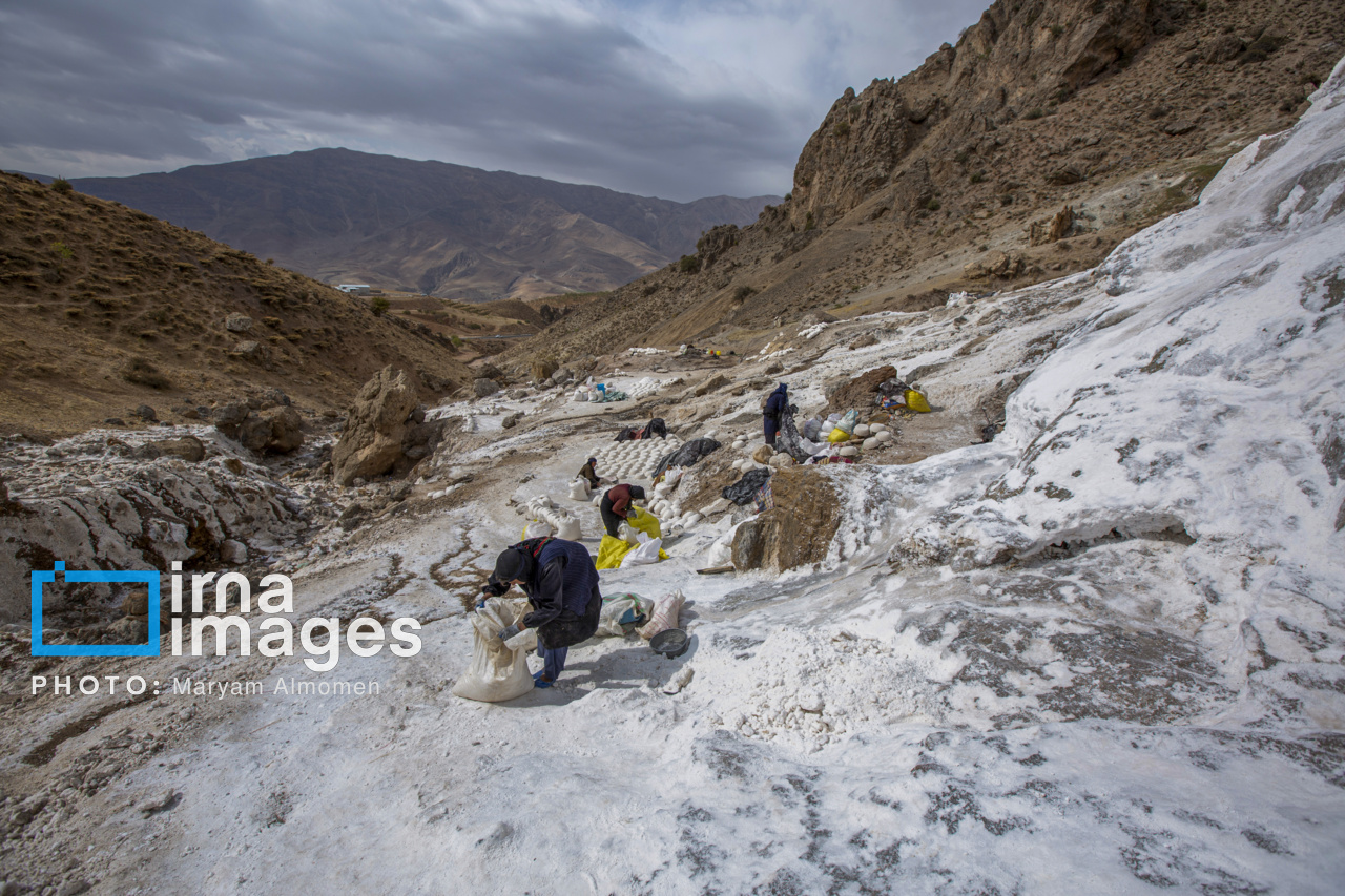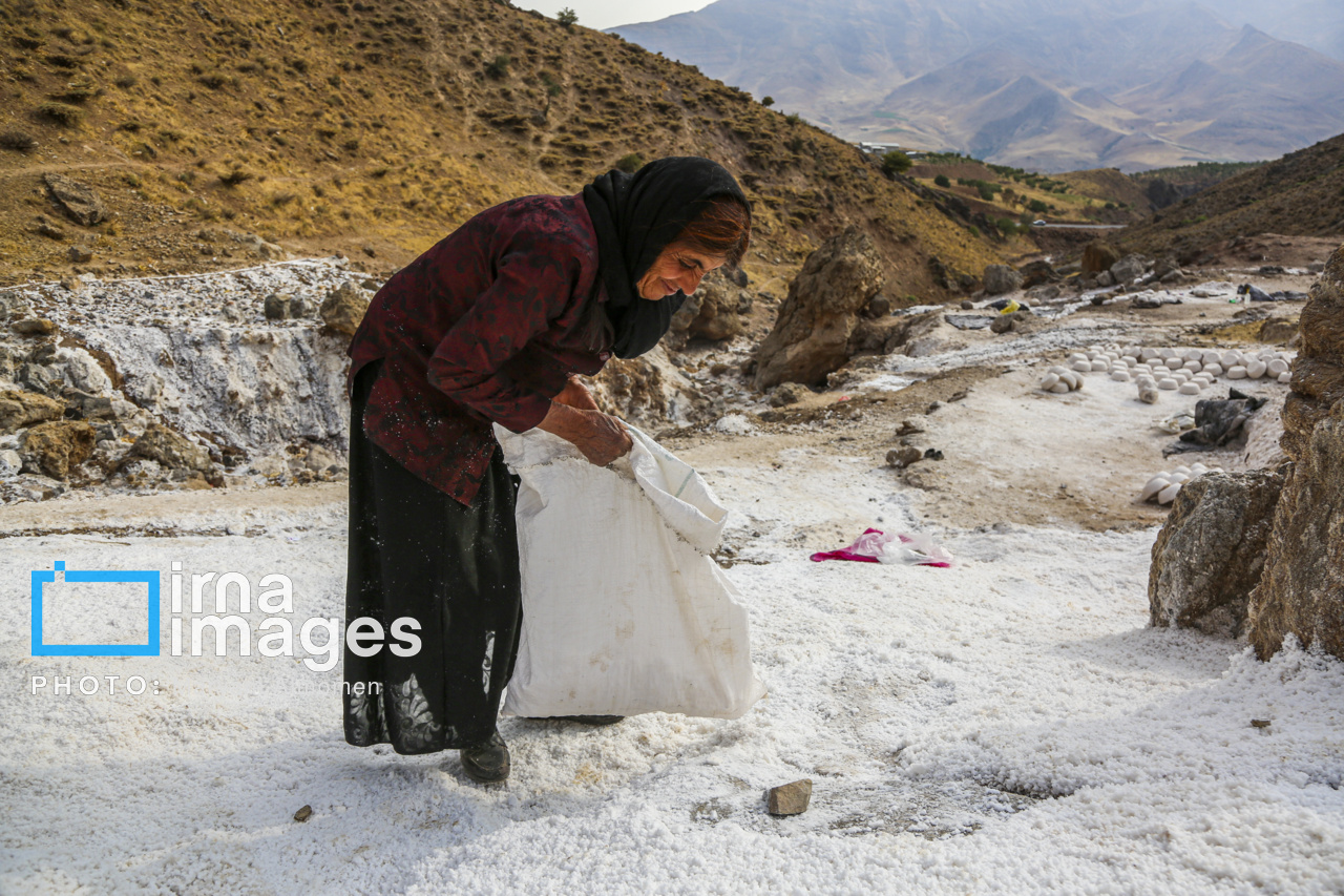 هر سال با آغاز فصل بهار، زنان سختکوش این سه روستا، پا به پای خورشید، راهی معدن نمک میشوند تا با تیشههای خود، بلورهای درخشان و ارزشمند نمک را از دل صخرهها بیرون بکشند. این فرایند که به زبان محلی «چیدن نمک» خوانده میشود، حاصل تدبیر و تجربه نسلهاست. از اواخر فروردینماه، آب چشمههای نمکی به دقت بر روی صخرهها هدایت میشود. پس از گذشت چند روز و تبخیر آب در آفتاب سوزان، لایههایی از بلورهای نمک نمایان میگردد که همچون الماسهای سفید در دل کوهستان میدرخشند.با دقت و وسواس، زنان با تیشههای خود به جان صخرهها میافتند تا این تکههای نمک را جدا کنند. سپس، بلورهای جدا شده به پایین دره منتقل میشوند تا با کمک سنگهای بزرگ، نرم و آسیاب شوند. در گام نهایی، نمک پودر شده در قالبهای کاسهای شکل ریخته شده و زیر نور مستقیم آفتاب قرار میگیرد تا کاملاً سفت و خشک شود. این نمکهای قالبگیری شده، که هر کدام گویی بخشی از روح این سرزمین را در خود دارند، با کمک چهارپایان به پایین دره حمل میشوند تا از آنجا با خودروهای باری به نقاط مختلف کشور انتقال یابند و زینتبخش سفرهها و خوراک دامها شوند.راز کیفیت بینظیر نمک «قلعه رشید» در املاح معدنی غنی و ویژهای نهفته است که حاصل عبور آب چشمهها از لایهها و سنگهای گوناگون زمین در اعماق آن است.