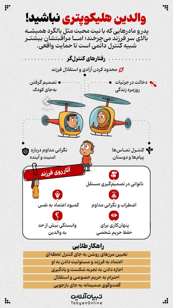 پدر و مادرهایی که با نیت محبت مثل بالگرد همیشه بالای سر فرزند میچرخند؛ اما مراقبتشان بیشتر شبیه کنترل دائمی است تا حمایت واقعی.