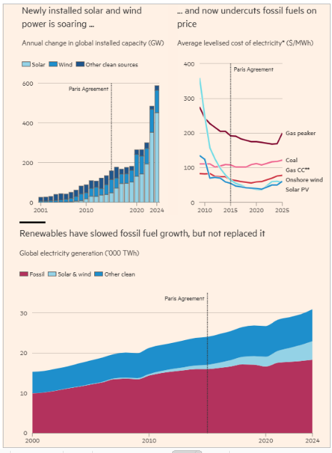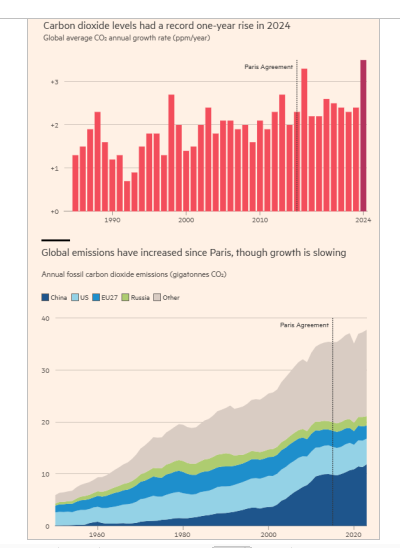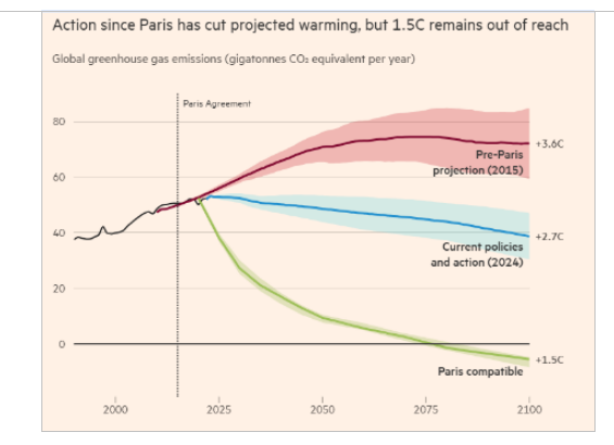 سازمان ملل مجبور شده اعتراف کند که جهان به هدف توافق (محدود کردن گرمایش بلندمدت جهانی به 5/1 درجه نسبت به اواخر قرن نوزدهم) نزدیکتر از همیشه به شکست است؛ سطحی که برای اولین بار در یک سال تقویمی (۲۰۲۴) گذرانده شد. با این حال، کنار گذاشتن این توافق به عنوان یک شکست کامل، اشتباه خواهد بود. حتی اگر هرگز ندانیم که جهانی بدون این توافق چگونه میبود، حدس زدن آن سخت نیست که اگر این توافق اقدامهای اقلیمی را در اندیشه جریان اصلی تثبیت نکرده بود در چنین شرایطی، رهبران کشورهای بزرگ تولیدکننده سوخت فسیلی، راحتتر میتوانستند در برابر سیاستهای کاهش انتشار مقاومت کنند. اگر این توافق بیمعنا بود، آیا ترامپ دو بار آمریکا را از آن خارج میکرد؟ شاید، اما با اینکه تلاشها برای کاهش انتشار ناکافی بوده، بیمعنا هم نبودهاند.