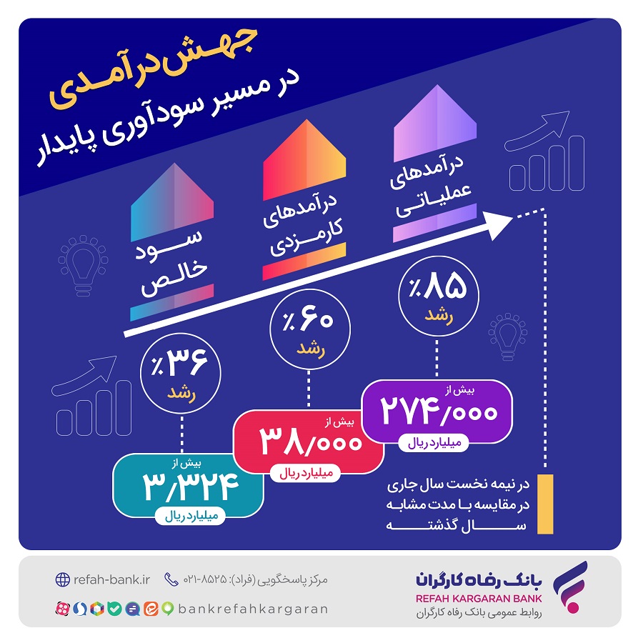 بر اساس این گزارش، درآمدهای کارمزدی بانک رفاه کارگران نیز در همین مدت با رشد حدود 60 درصدی به بیش از 38.000 میلیارد ریال رسیده است که نشان میدهد سهم درآمدهای غیرمشاع (غیر وابسته به سود تسهیلات) در این بانک افزایش قابل توجهی داشته است.