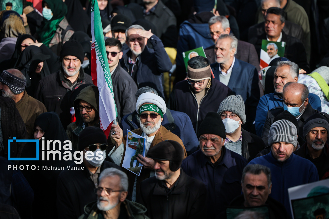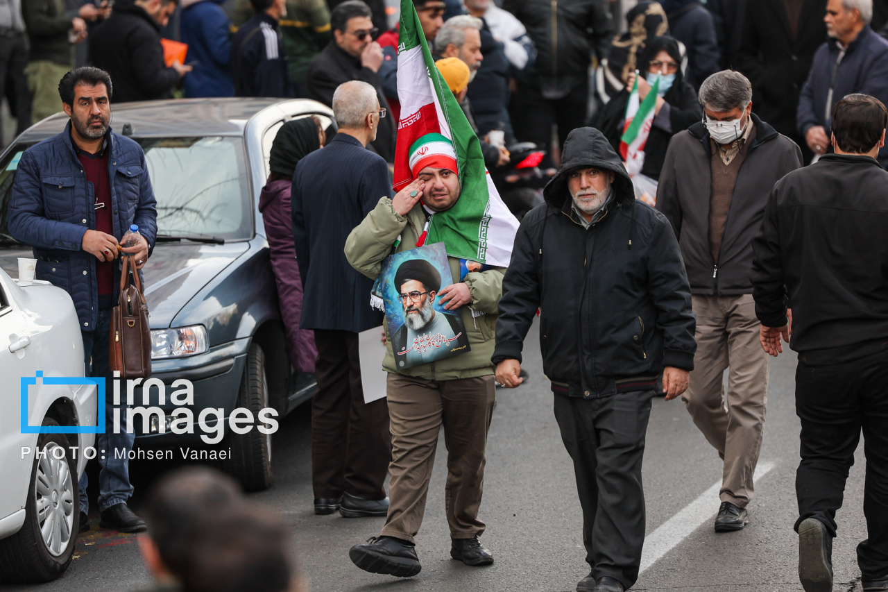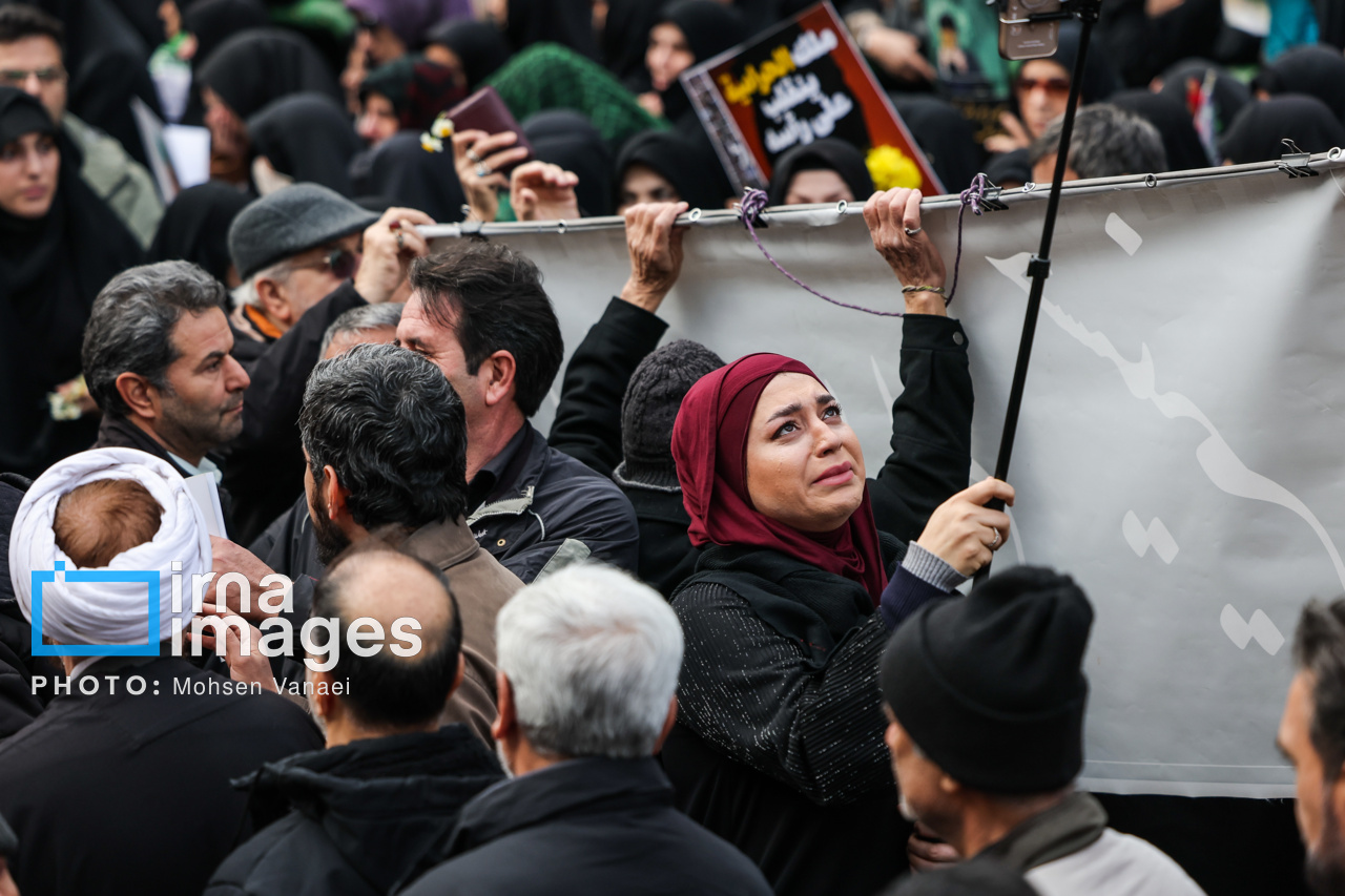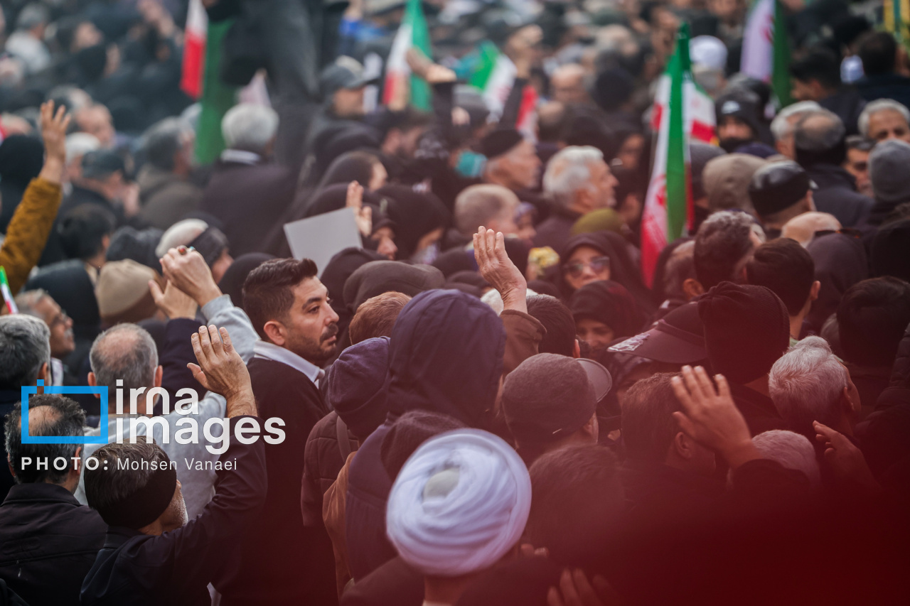 4041024084مراسم تشییع پیکر ۱۰۰ شهید مردمی و مدافع امنیت که در ناآرامی ها و اغتشاشات اخیر در تهران به شهادت رسیدند، عصر چهارشنبه (۲۴ دی ۱۴۰۴) با حضور خانواده های معظم شهدا و ایثارگران، مسئولان کشوری و لشکری و اقشار مختلف مردم از مقابل دانشگاه تهران به سمت معراج شهداء برگزار شد.