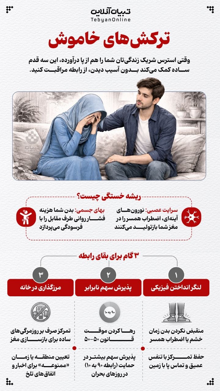 4050126076وقتی استرس شریک زندگیتان شما را هم از پا درآورده، این سه قدم ساده کمک میکند بدون آسیب دیدن، از رابطه مراقبت کنید.