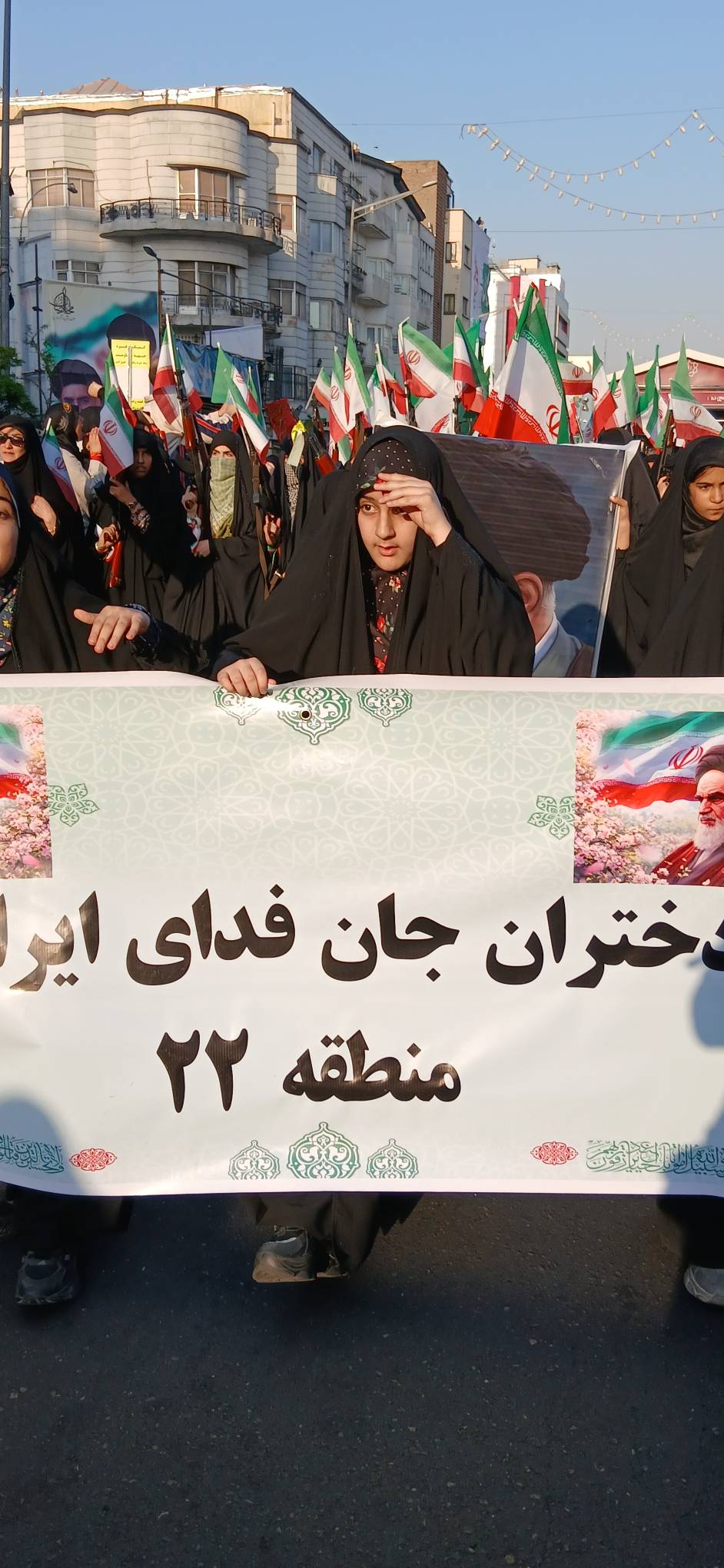 آیین راهپیمایی دختران جان فدای ایران در آستانه فرارسیدن سالروز ولادت حضرت معصومه (س) از میدان امام حسین (ع) تا چهارراه ولیعصر (عج) برگزار شد. این راهپیمایی از نخستین ساعات ظهر امروز (جمعه) آغاز شد و شاهد حضور پرشمار دختران دهه هشتادی و دهه نودی بود که پرچم ایران در دست داشتند و با سربندهای «یا زینب (س)» و «جانم فدای ایران» به خیابان آمده بودند.