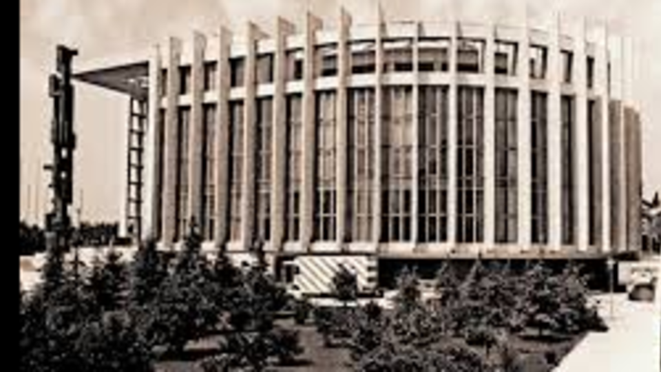 او افزود: بخش دیگر ساختمان شامل صحن است که بهصورت یک نیماستوانه طراحی شده و در کنار آن، بخش کمیسیونها بهصورت یک حجم مکعبی قرار دارد. ورودی اصلی نیز در جنوب این مجموعه واقع شده است. در مجموع، ساختمان ترکیبی از یک مکعب پنجطبقه و یک استوانه چهارطبقه است که صحن در آن قرار گرفته است. صحن اصلی دو طبقه دارد و طبقه همکف آن به دو بخش تقسیم میشود، بخشی برای نمایندگان و بخشی برای مهمانان. در مجموع، این فضا ظرفیت حدود ۵٠٠ صندلی را داشته است. میان بخش نمایندگان و مهمانان نیز یک دیوار متحرک وجود داشته که در مواقع عدم حضور مهمانان، میتوانستند آن را بهصورت یک پرده مکانیکی بالا ببرند. این دیوار متحرک از ویژگیهای تکنولوژیک جالب ساختمان بوده و با بالا رفتن آن، فضای صحن کوچکتر میشده است. ما در تصاویر، معمولاً یک صحن بزرگ را دیدهایم، اما در واقع صحن، کوچکتر هم میشده است. زمانی که این پرده متحرک بسته میشده، فضا محدودتر میشده است.