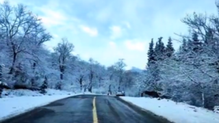 لحظه آغاز بارش برف در گردنه حیران آستارا