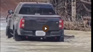 در یک ویدئوی شوکه کننده از پارک ملی کاکادو در استرالیا، لحظهای ثبت شده که یک وانت هنگام عبور از رودخانهای مملو از تمساح، ناخواسته از روی یکی از آنها عبور کرد.