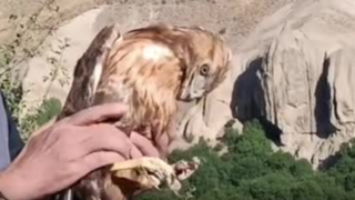 یک عقاب «ساری گبه» پس از یک ماه تیمار توسط یکی از دوستداران طبیعت در کوه سهند آذربایجانشرقی به پرواز درآمد.